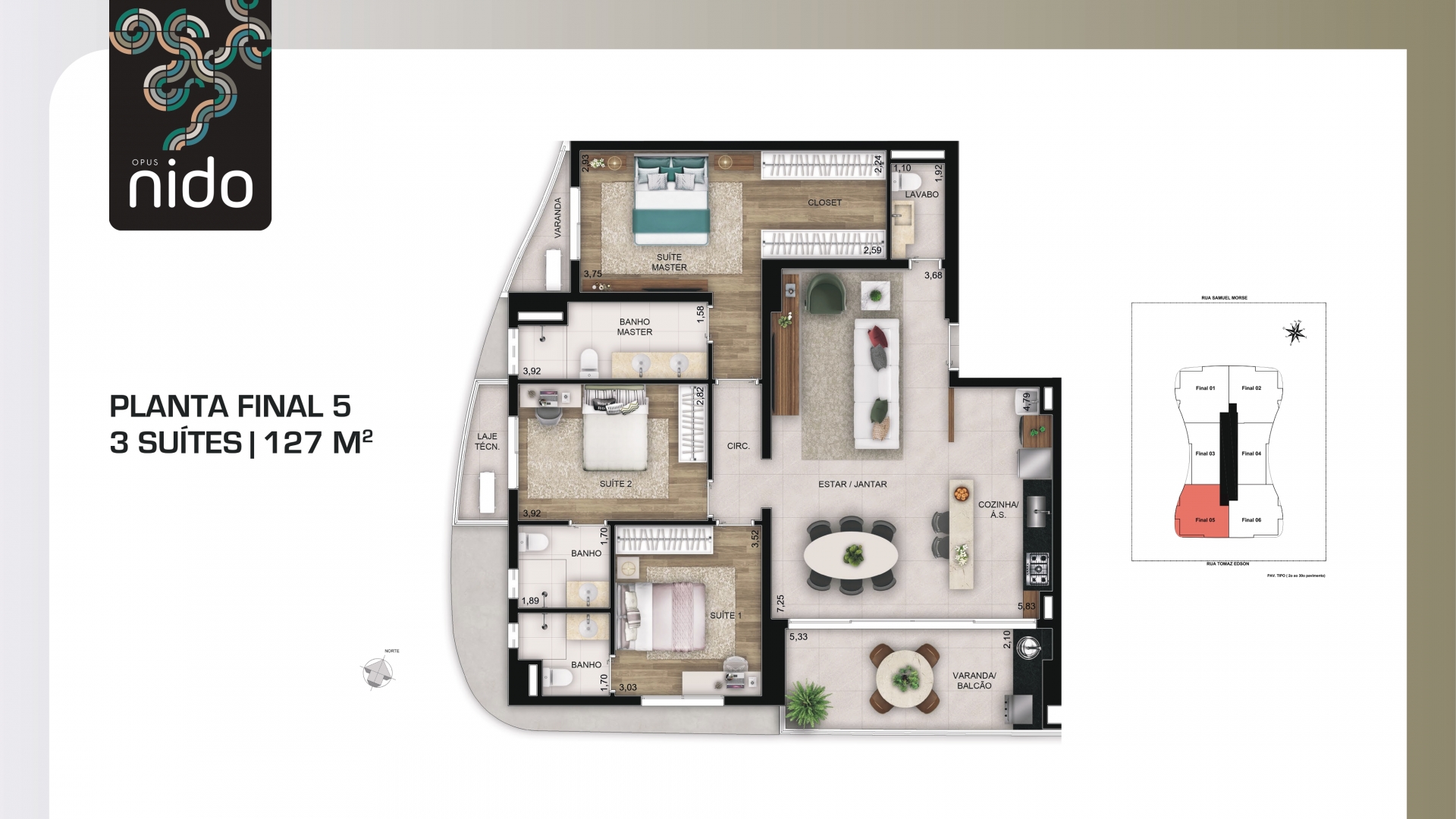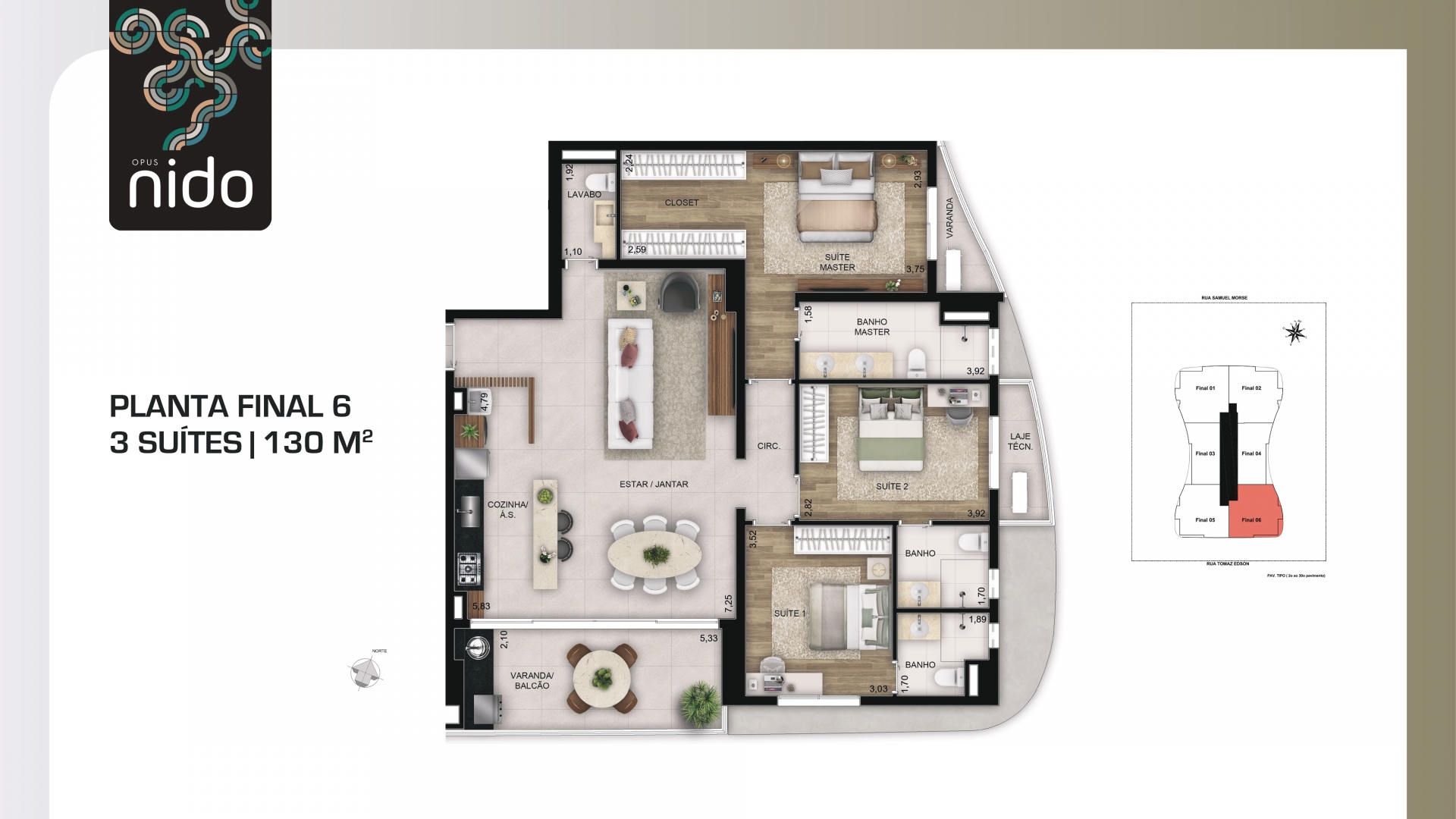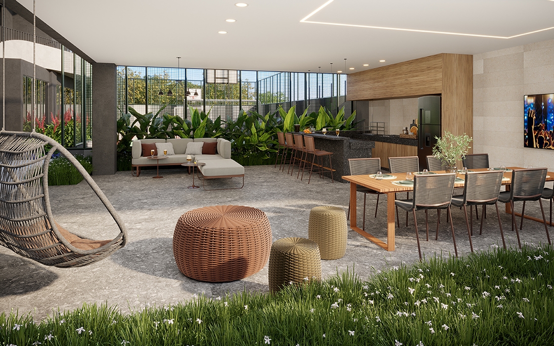Espaços bem dimensionados e integrados que ampliam conforto e funcionalidade.