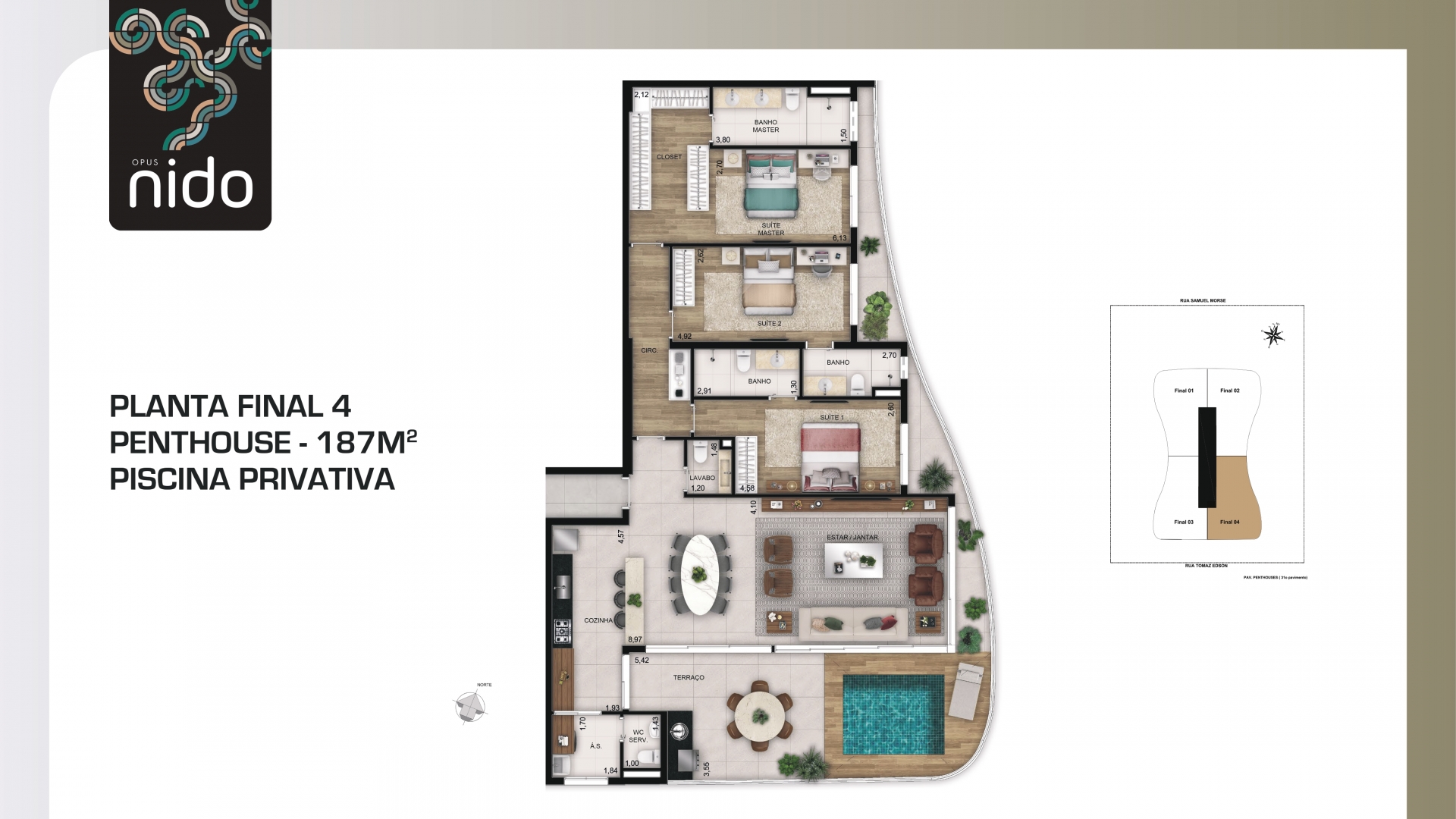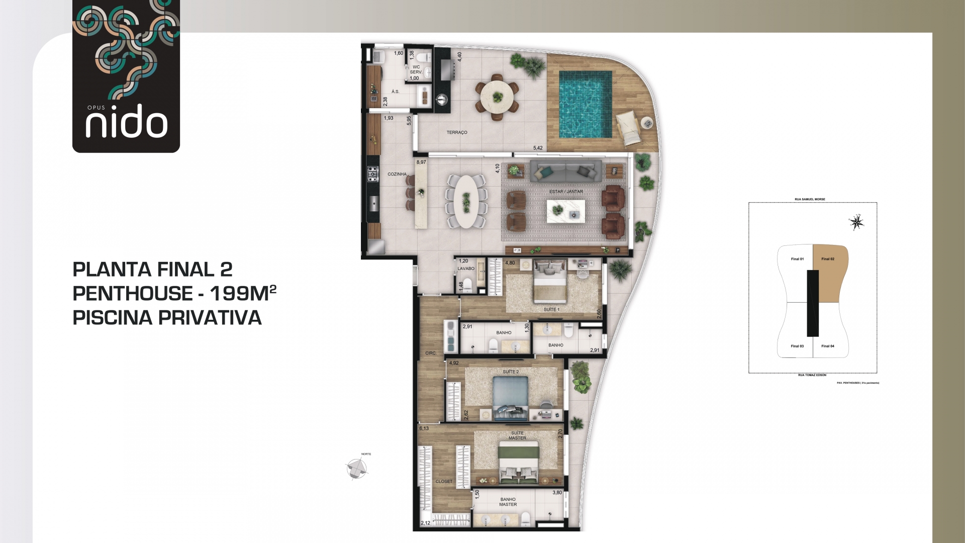 O nome Nido vem do italiano, que significa ninho e guia a proposta de oferecer um ambiente intimista, afetuoso, seguro e cercado de muito verde.